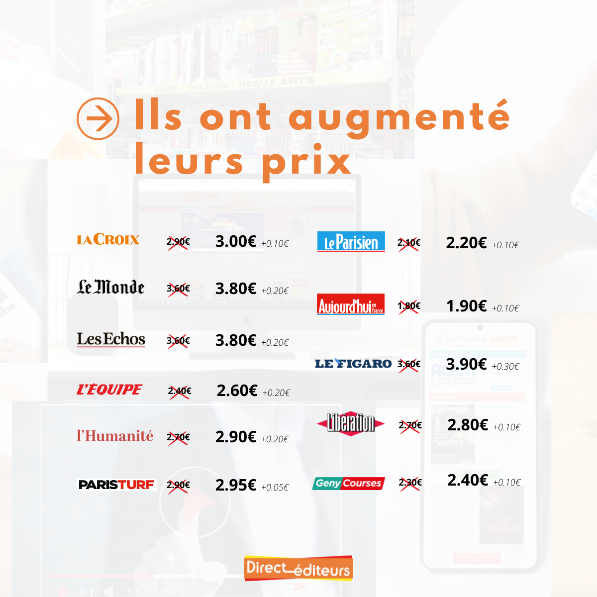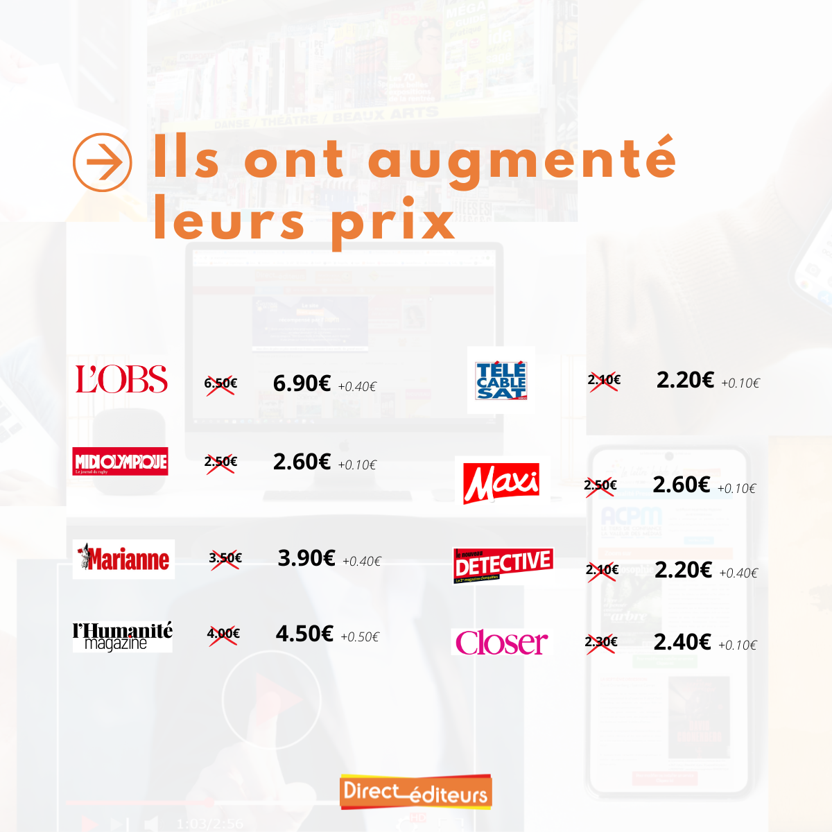 Ces hausses concernent aussi bien les grands titres nationaux que certains magazines et journaux régionaux, confirmant une tendance générale dans le secteur.